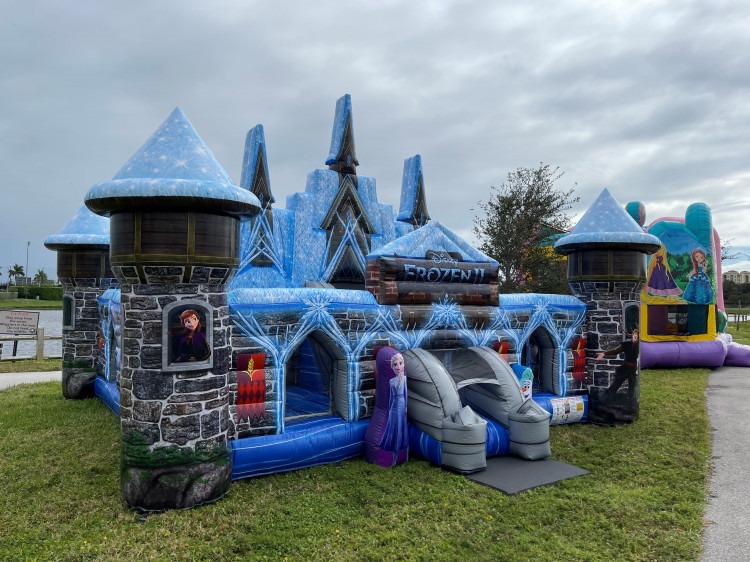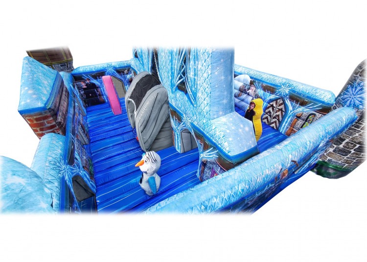 The Frozen Playland Combo gifts participants with an expansion of curiosity and excitement. As you're approaching this enchanting, all-inclusive inflatable, Queen Elsa is waiting for you at the entrance. This icy combo is full of pop-up displays of the main characters from the Frozen movie. Party members will have the luxury of experiencing a tour through the mystical palace. The Frozen Playland Combo is certainly the most suitable scene ''where the storm can rage ON !''