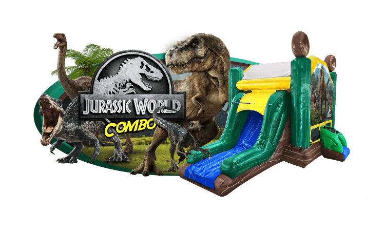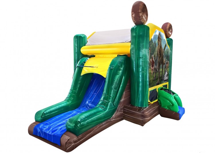The Jurassic World Combo is best for any exotic theme. Made up of a miniature slide and a big bouncy house for the little ones. This inflatable has a prehistoric surface that builds an attraction.