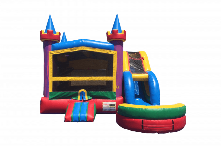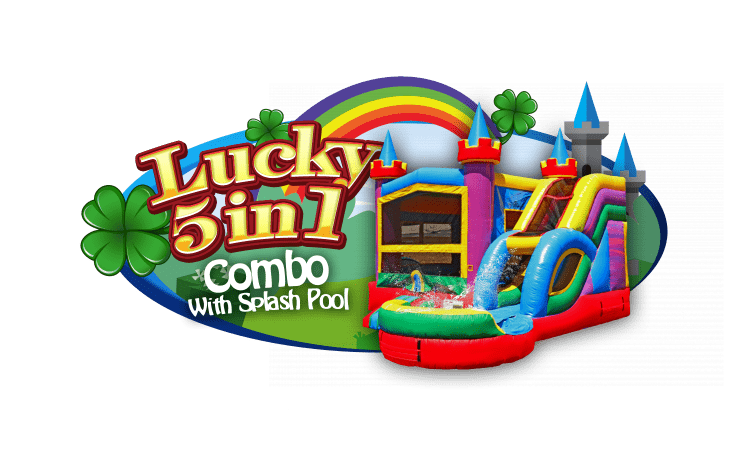 Feeling lucky? The Lucky 5 in 1 Combo with Splash Pool is a colorful way to add an enhancement to your event. The Lucky inflatable comes with 1) stairs, 2) bounce house, 3) basketball hoop, 4) wet/dry slide, and 5) splash pool. These 5 major factors of this bouncy inflatable are key to any lucky occasion.