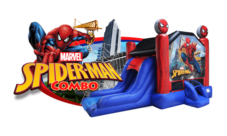 The Spider-Man 3 in 1 Combo is great for any Marvel themed event. This inflatable is combined with the following, 1) Bouncing, 2) Climbing, 3) Basketball Hoop, and 4) Waterslide. This celebrated combo is sufficient for participants to test their spider-man abilities.