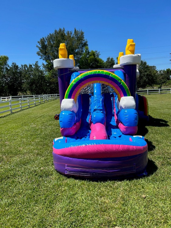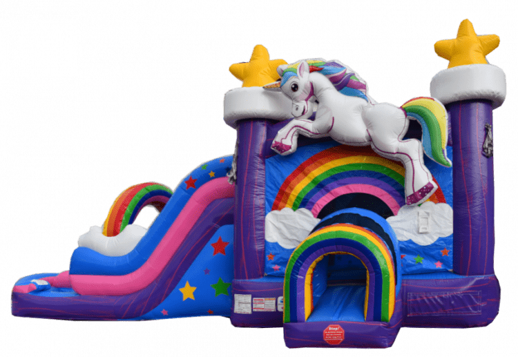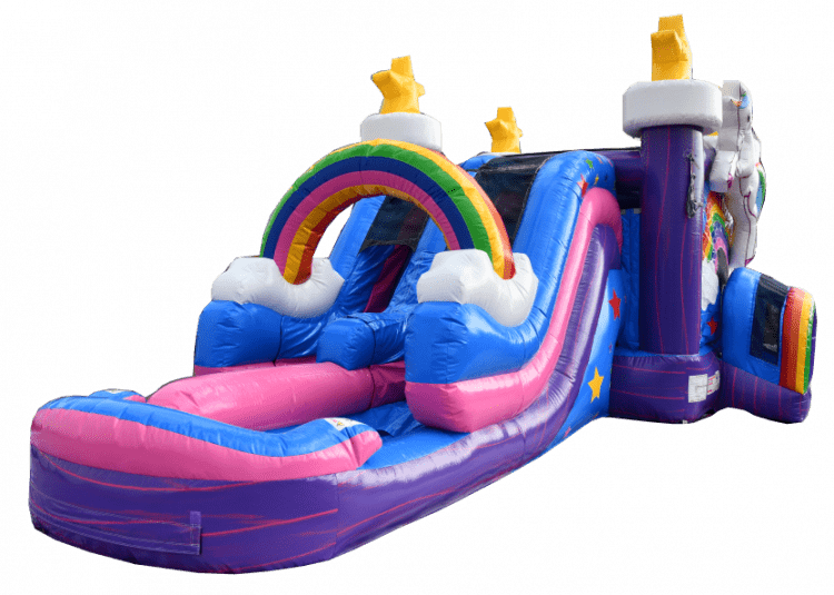 The Double Lane six in one wet dry unicorn combo is the perfect addition to any party! With its vibrant colors and fun unicorn theme, it's sure to be a hit with both kids and adults alike.