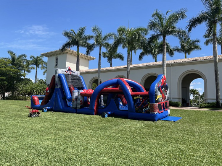 Check out the Spider-Man Obstacle Course! This inflatable obstacle course is a great way for kids to test out their amazing reflexes and coordination. This action-packed course is the perfect addition to any Marvel themed party/occasion. Party members will enjoy finding their way through the challenging twist and turns. To top off the maze of swiftness, you will experience a 50ft long, wet/dry slide.