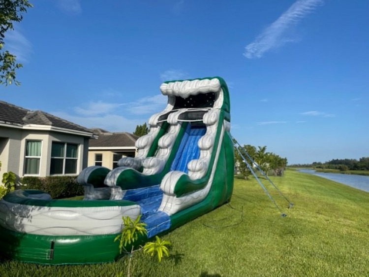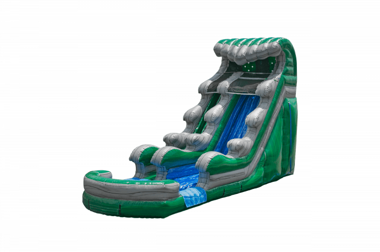 This Emerald Crush is sure to be fun for all ages. Bring the feel of the jungle and paradise right into your own backyard! Standing 20ft tall and 40ft long, this water slide gets the adrenals working!!