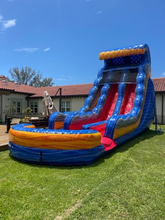 So why wait? Book the 25 foot tall Fire Blast Double Lane Waterslide with Pool today and get ready for an unforgettable summer adventure! With its thrilling slide and refreshing pool, it's the perfect way to beat the heat and have some fun in the sun.